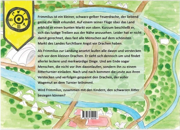 Frimmlius ist ein kleiner, schwarz-gelber Feuerdrache, der liebend gerne die Welt erkundet. Auf einem seiner Flüge über das Land erblickt er einen bunten Markt von oben. Kurzum beschließt er, sich das lustige Treiben aus der Nähe anzusehen. Leider hat er nicht damit gerechnet, dass fast alle Menschen auf dem schönsten Markt des Landes furchtbare Angst vor Drachen haben.